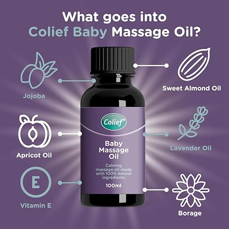 Colief Massage Oil is a gentle and nourishing oil enriched with all natural, plant-based ingredients such as Sweet Almond oil, Lavender oil, Jojoba and Vitamin E. Gentle enough to use from 3+ Months Colief Baby Massage Oil helps soothe and settle your baby if suffering from digestive problems or dry skin whilst allowing you to bond one on one with your baby at the same time.