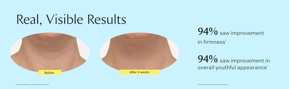 • Clinically proven results: In 4 weeks, 94% of participants using our neck tightening cream saw visible improvements in firmness, age spots and radiance, and overall youthful appearance*